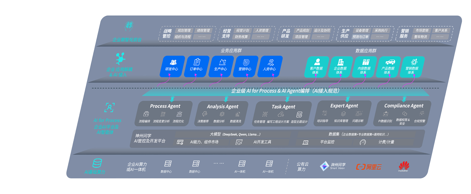 多多28问学智车解决方案是一套基于AI技术的汽车行业智能化系统,,覆盖从底层算力到顶层AI应用的全栈方案。。。。方案由算力层、、、、模型层和应用层组成:算力层,,,方案支持多种一体机配置,,,具备云端灵活部署、、、多云适配以及动态优化计算资源的能力;模型层,,,,多多28问学平台版提供了企业级AI应用一站式构建与管理平台,,支持基于后训练强化技术的汽车企业专属模型的训练、、、评测和运营;应用层,,,多多28问学DeepSeek版提供包括超级员工、、、智能招采、、、、智能营销、、智能客服、、AI for BI等一系列解决方案,,可助力汽车行业实现数字化转型,,让管理更智能、、响应更敏捷。。。